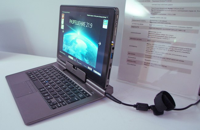 Toshiba U920t — уже довольно давно представленный на рынке трансформер, выполненный в форм-факторе слайдера: клавиатура спрятана под экраном, и для того чтобы ею воспользоваться, его нужно сдвинуть относительно корпуса вверх и поднять. Клавиатура всегда под планшетом и доступна пользователю, но нельзя отрегулировать положение экрана и не всегда удобно пользоваться клавиатурой.