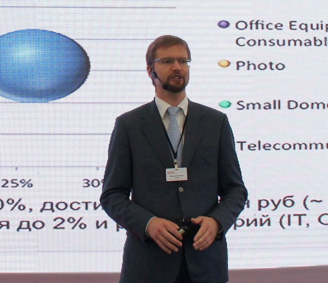 По словам Михаила Носкова, в 2012 году российский рынок электроники еще демонстрировал устойчивый рост, в отличие, например, от европейского, который практически вошел в стагнацию. На слайде показана диаграмма с параметрами рынка в 2012 году по сравнению с предыдущим, 2011-м.