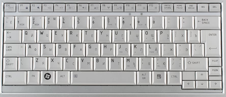 Раскладка клавиатуры оставила двойственные впечатления. К сожалению, для всех новых моделей Toshiba, поставляющихся на российский рынок, был выбран неудачный дизайн клавиатуры. Во-первых, уже неоднократно упоминавшийся «короткий» левый shift и вертикально расположенный enter. Из-за этих двух измененных клавиш пользоваться клавиатурой при слепой печати неудобно (подробнее об этом можно почитать, например, здесь). Непонятно, почему для России нужно было выбирать этот неудобный вариант — ведь сэмплы были с более удобной и универсальной клавиатурой.