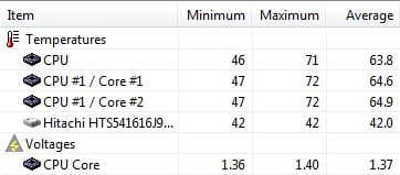 Как видите, система охлаждения хорошо справилась со своими обязанностями, температура выросла незначительно. Для сравнения, — температура системы в состоянии покоя.