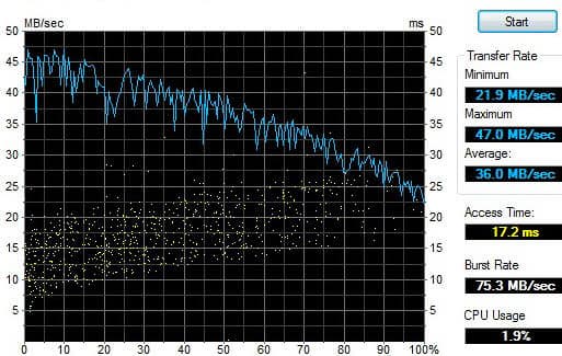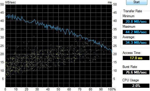Отдельно была протестирована дисковая подсистема. Напомним, в X200-21U установлены два жестких диска Hitachi объемом 160 ГБ каждый, со скоростью вращения 5400 об/мин.