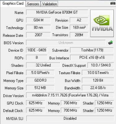 | Видео | nVidia GeForce Go 8700 M GT, 512+768 МБ |
