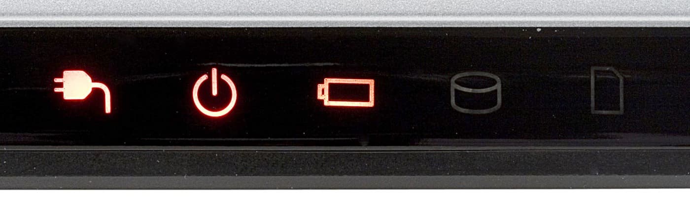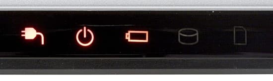 Основные системные индикаторы ноутбука расположены на скошенной части передней панели перед тачпадом.