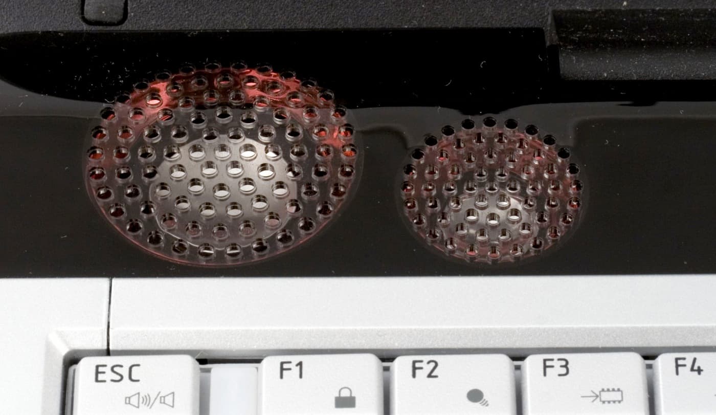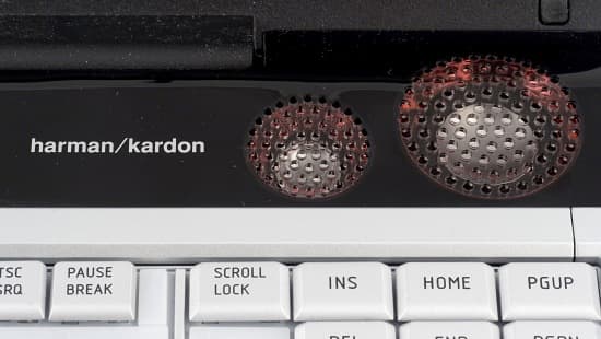 Второй важнейший компонент — звуковая подсистема. Ноутбуки традиционно обладали достаточно средней по характеристикам акустикой. В ноутбуке невозможно разместить достаточно большие динамики, которые эффективно работали бы в более-менее широком диапазоне частот. К тому же, тут сложно использовать тот же эффект, что дает использование внутреннего объема колонки. Наконец, очень сложно разместить динамики ноутбука так, чтобы они смотрели на пользователя, а это имеет очень важное значение в восприятии звука.