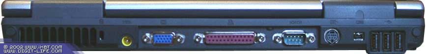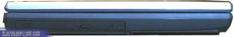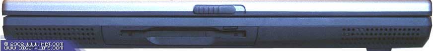 Спереди вместо отправленного "в запас" ИК-порта появился дисковод. Не могу сказать, что это оптимальное решение. Все-таки удобнее работать, когда дискета вставляется сбоку. Я не говорю уже о том случае, когда ноутбук лежит на коленях. Динамики остались на прежних местах.