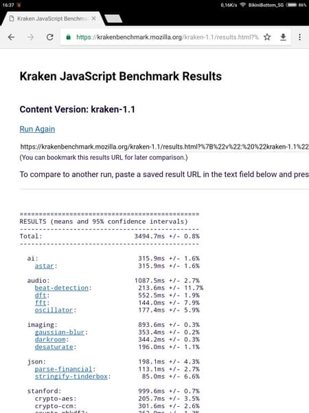 | Mozilla Kraken (мс, меньше — лучше) | 3495 | 2833 | 3192 |