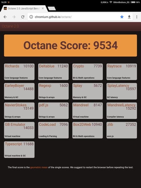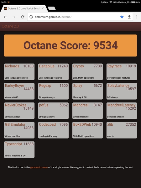 | Google Octane 2 (больше — лучше) | 9534 | 8934 | 10743 |