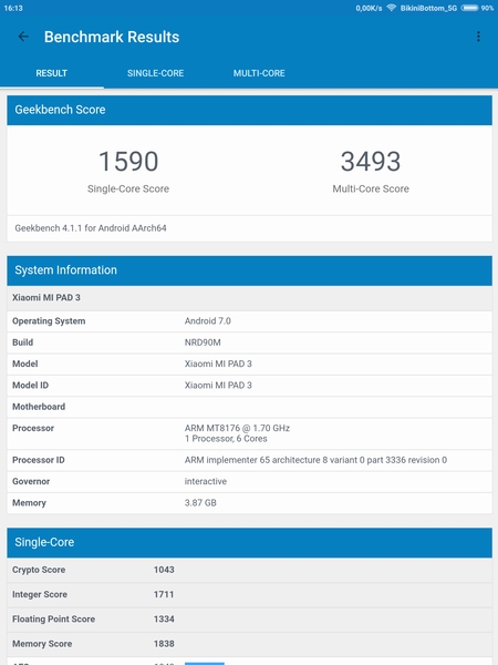 | GeekBench (v4.x) (больше — лучше) | 1590/3493 | 1737/4014 | 1721/4739 |