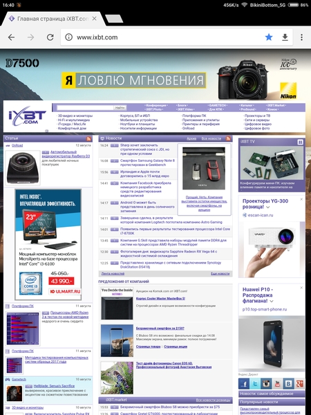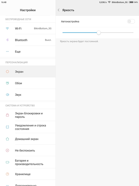 Экран у Xiaomi Mi Pad 3 чуть темнее (яркость по фотографиям 119 против 120 у Nexus 7). Двоение отраженных объектов в экране Xiaomi Mi Pad 3 очень слабое, это свидетельствует о том, что между слоями экрана (конкретнее между внешним стеклом и поверхностью ЖК-матрицы) нет воздушного промежутка (экран типа OGS — One Glass Solution). За счет меньшего числа границ (типа стекло/воздух) с сильно различающимися коэффициентами преломления такие экраны лучше смотрятся в условиях интенсивной внешней засветки, но вот их ремонт в случае потрескавшегося внешнего стекла обходится гораздо дороже, так как менять приходится экран целиком. На внешней поверхности экрана есть специальное олеофобное (жироотталкивающее) покрытие (по эффективности даже лучше, чем у Nexus 7), поэтому следы от пальцев удаляются значительно легче, а появляются с меньшей скоростью, чем в случае обычного стекла.