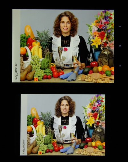 Насыщенность цветов на экране Xiaomi Mi Pad 3 нормальная, цвета близки к естественным, но изображение чуть затемнилось. Цветовой баланс у Nexus 7 и тестируемого экрана различается незначительно. Фотография получена при выбранном по умолчанию профиле Automatic contrast в настройках экрана: