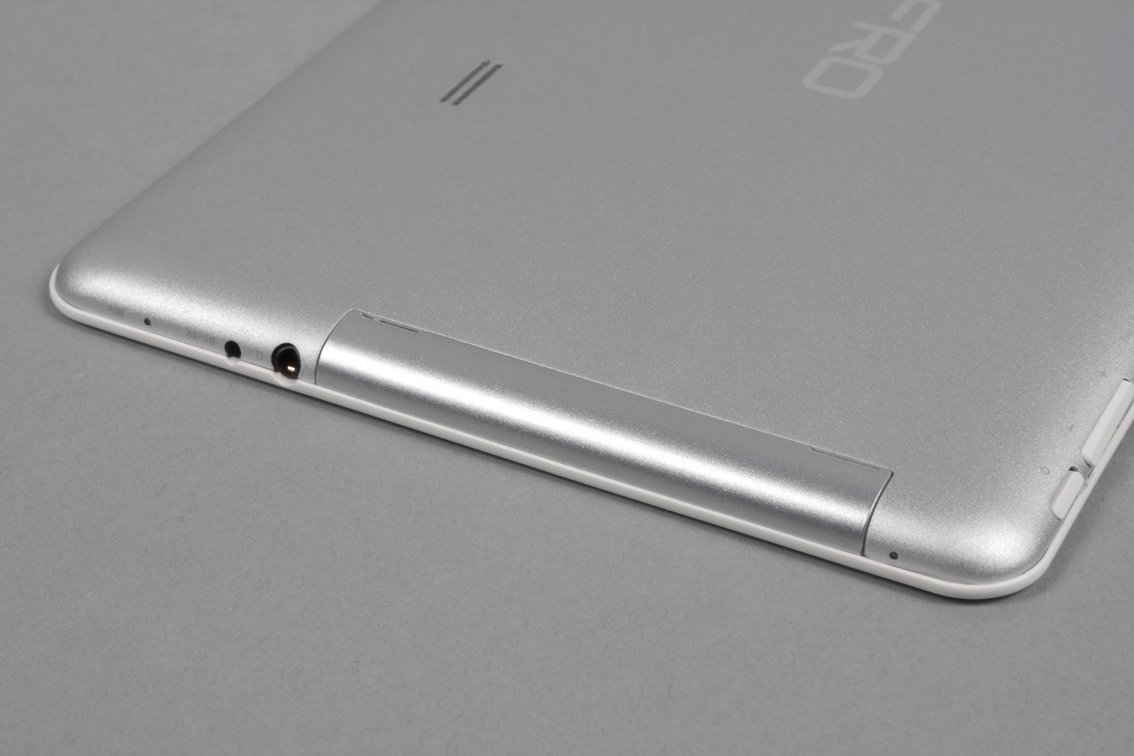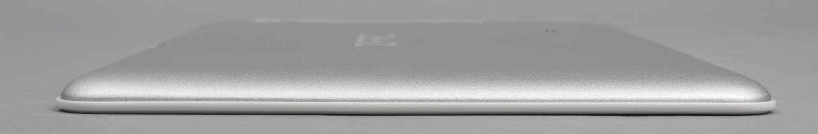 Несмотря на то, что задняя панель сделана из металла и имеет изогнутую форму, корпус планшета не является цельным, поскольку между двумя половинками присутствует тонкое пластиковое ребро.