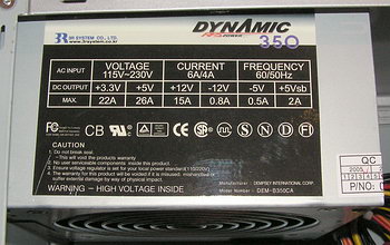 Блок питания у протестированного нами экземпляра корпуса R201 — 350-ваттный ATX 2.03 Dynamic RPS 350 (этот же корпус сейчас можно встретить в продаже и с 300-ваттным блоком питания).