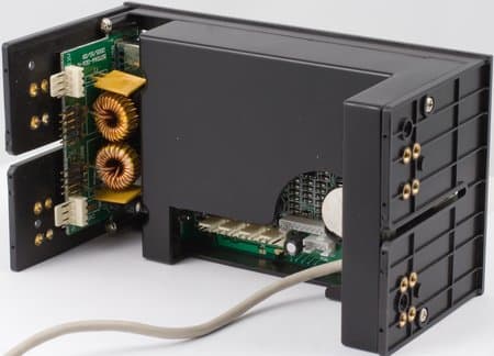 Устройству для полноценной работы требуется два питающих разъема от БП: один для PoweredUSB и второй — для всего остального. При этом каждый кабель питания оснащен разветвителем, то есть столь ценные свободные разъемы от блока питания удастся сохранить незанятыми. Не совсем понятно, почему нельзя было ограничиться одним питающим разъемом? Ведь ток PoweredUSB не настолько велик, чтобы выделять под него отдельную линию питания.