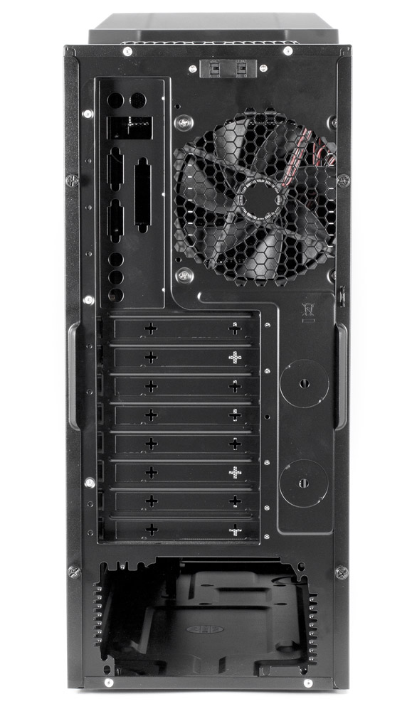 Зато можно установить жидкостную систему охлаждения, для нее на задней стенке шасси есть отверстия с металлическими заглушками, которые надо выламывать.