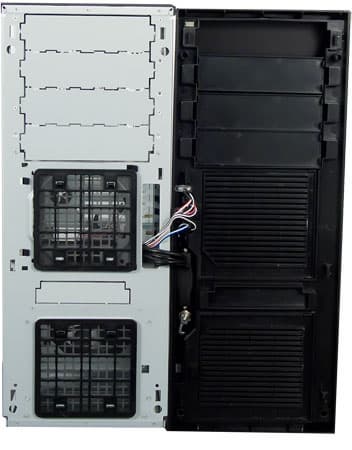 Переключатели скорости вращения для верхних 140 миллиметровых вентиляторов и для 120 мм вентилятора на задней стенке вынесены в отдельный блок, доступный для переключения без открытия корпуса. Расположен он в том месте, где обычно находится блок питания.