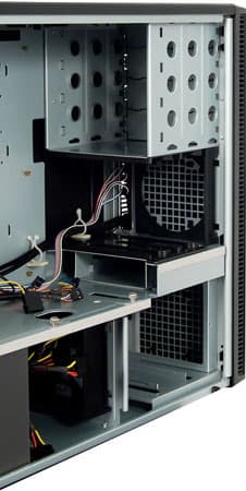 Более того, установка в нижнюю корзину двух жестких дисков и их работа в холостом режиме остается для пользователя совершенно незаметной.