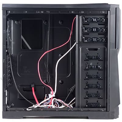 Корпус имеет явно выраженную «геймерскую» направленность и позиционируется как домашнее, но не офисное решение. Что абсолютно логично, учитывая как внешний вид, так и факт отсутствия комплектного блока питания.