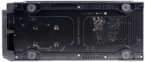 Корпус поставляется без стандартной заглушки портов ввода/вывода, так что тратить время на ее извлечение не понадобится. Материнская плата крепится на крепкие проштампованные наплывы с резьбой. На случай, если крепежные отверстия на материнской плате окажутся нестандартными, на подложке присутствуют места под установку дополнительных латунных стоек. Также на подложке имеется вырез в области процессорного сокета, позволяющий производить демонтаж и установку некоторых габаритных кулеров без полного снятия системной платы.