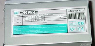 В соответствии с предложенной методикой величина нагрузки была выбрана из расчета рабочей мощности 200 W. Первой «жертвой» был выбран блок питания из дешевого корпуса. После включения, проработав 15 секунд, он выключился. Повторные попытки его включения под нагрузкой успехом не увенчались. То же произошло и при подключении его к компьютеру. Предположив, что данный экземпляр был неисправен, мы подключили второй такой же блок питания к испытательному стенду — ситуация повторилась. Таким образом, в первые минуты испытаний вышли из строя оба блока питания из корпуса NONAME. Их выход из строя произошел при нагрузке на 20% меньше, чем указано на наклейке. Поэтому было решено изменить условия экспериментов: уменьшить нагрузку в 1-ой серии опытов до 150W, что составляет 60% от значения, указанного на дешевом блоке питания (250W), и 50% — для блоков питания с маркировкой 300W. Но так как блоков питания из дешевых корпусов больше не было, пришлось перейти к испытаниям более дорогих и мощных блоков питания.