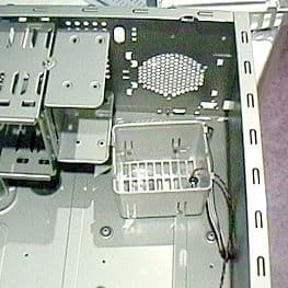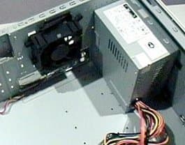 Блок питания расположен вертикально и закрывает материнскую плату. С другой стороны материнскую плату Full ATX может закрывать CD-ROM. Блок питания устанавливается в корпус через специальный переходник на одном винте, что упрощает доступ к материнской плате при дефиците внутреннего пространства из-за небольшого размера корпуса.