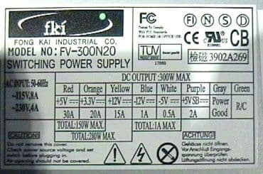 Что касается расчетных результатов мощности, полученных как в ходе успешных опытов, так и в ходе опытов, приведших к поломке блоков питания (таблицы 2-6), отметим — все дорогие блоки питания успешно работают длительное время при расчетной нагрузке мощностью 270W без потери работоспособности и без необратимого ухудшения характеристик. Это значит, что компьютер максимальной на сегодняшний день комплектации и загруженный мощной задачей, будет нормально работать длительное время, и останется еще запас по мощности в расчете на будущие модернизации. Постоянное потребление мощности, приближающейся к 300W, характерное для более сложных и мощных, чем бытовой и офисный, компьютеров (двух- или четырехпроцессорный сервер для игры в Quake тридцати игроков с подключением к сети типа LAN/T3, требующий на самом деле специального серверного корпуса), условно возможно только для блока Inwin. Для блоков Fong Kai и ЕС максимальная постоянная нагрузка не может превышать соответственно 285W и 290W. При постоянном потреблении около 270W длительность пиков — до 300W может составлять: для Fong Kai — до 1 минуты, а для ЕС — до 5 минут. Хочется еще раз отметить, что на данный момент такое потребление является не характерным для большинства домашних и корпоративных персональных компьютеров, а наше исследование скорее стоит рассматривать как тест на выживание. Мощность выше 250W скорее стоит рассматривать как необходимый запас (для последующих модернизаций), потому что корпус приобретается на 3-4 года.