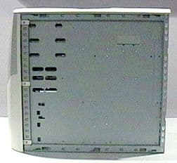 Лицевая панель крепится на защелках но полностью не снимается, так как к ней крепятся индикаторы и кнопки. Заглушки на задней панели для плат и разъемов материнской платы приходится выламывать, в следствие чего деформируется железо и образуются заусенцы. На передней панели имеется место для установки дополнительного вентилятора на винтах.