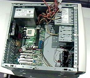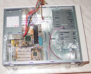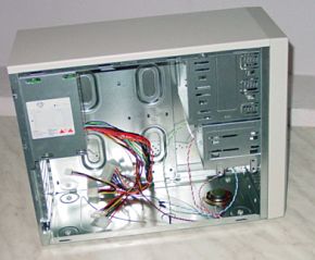 Теперь представьте достаточно знакомую ситуацию: несколько лет на вашем столе стоит ПК, в котором блок питания ревет как турбина вертолета, а при запуске CD-ROM'a начинает дребезжать боковая панель корпуса и при каждой модернизации об острые необработанные края шасси травмируются руки. Каждый раз приходится разбирать вообще весь компьютер, чтобы установить линейку памяти, так как чтобы ее вставить, надо снять блок питания, а чтобы отсоединить провода от CD-ROM'а, надо снять вторую боковую крышку и панель с материнской платой, да еще и отключить от нее все провода. Резьбы куда-то исчезли после первой модернизации, так как железо настолько тонкое, что резьбы не могло и быть. Да еще при снятии боковой крышки корпуса, ее надо обязательно подцеплять отверткой, при этом она гнется, скалывается краска, а при установке крышки на место надо обязательно забивать ее кулаком. Печальная и, к сожалению, знакомая картина.