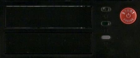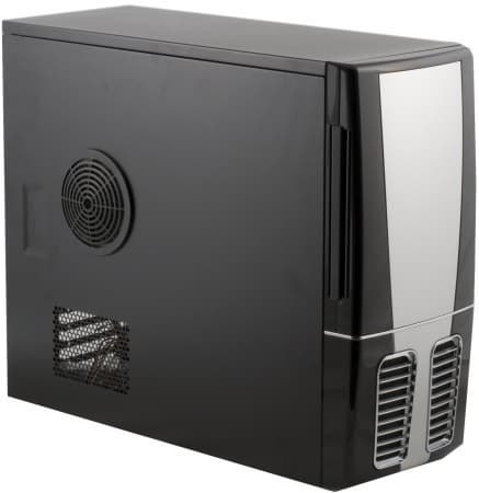 Корпус оснащён двумя портами USB, разъемами для подключения микрофона и наушников, а также одним портом FireWire. Расположены они на левой стороне передней панели корпуса. Такой вариант расположения будет неудобен для всех, у кого корпус стоит в нише стола, так как к разъёмам невозможно будет подобраться. Качество исполнения самих разъёмов хорошее. Кнопки включения и перезагрузки, а также индикаторы питания и активности жесткого диска скрылись под декоративной дверцей. Кнопку включения не заметить невозможно, а RESET по форме ничем не отличается от светорассеивателя индикаторов. Габариты кнопки сброса достаточно малы, но нажать её пальцем всё-таки можно, хотя и с трудом.