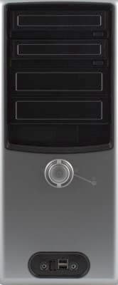 Передняя панель корпуса оснащена двумя декоративными шторками для оптических приводов, так что подбирать привод под цвет корпуса совсем не обязательно. В самом центре панели расположилась огромная кнопка включения, вокруг которой наблюдаются светорассеиватели от индикаторов питания и активности жесткого диска. Чуть в стороне можно с трудом рассмотреть крошечную кнопку RESET, нажать на которую можно только иголкой или аналогичным по толщине предметом. В нижней части передней панели разместился блок фронтальных разъёмов: два USB-порта, вход для микрофона и наушников. Фронтальный FireWire разъём разведен, но не распаян, что несколько огорчает, ибо корпус не такой дешевый, и можно было бы на таких мелочах не экономить.