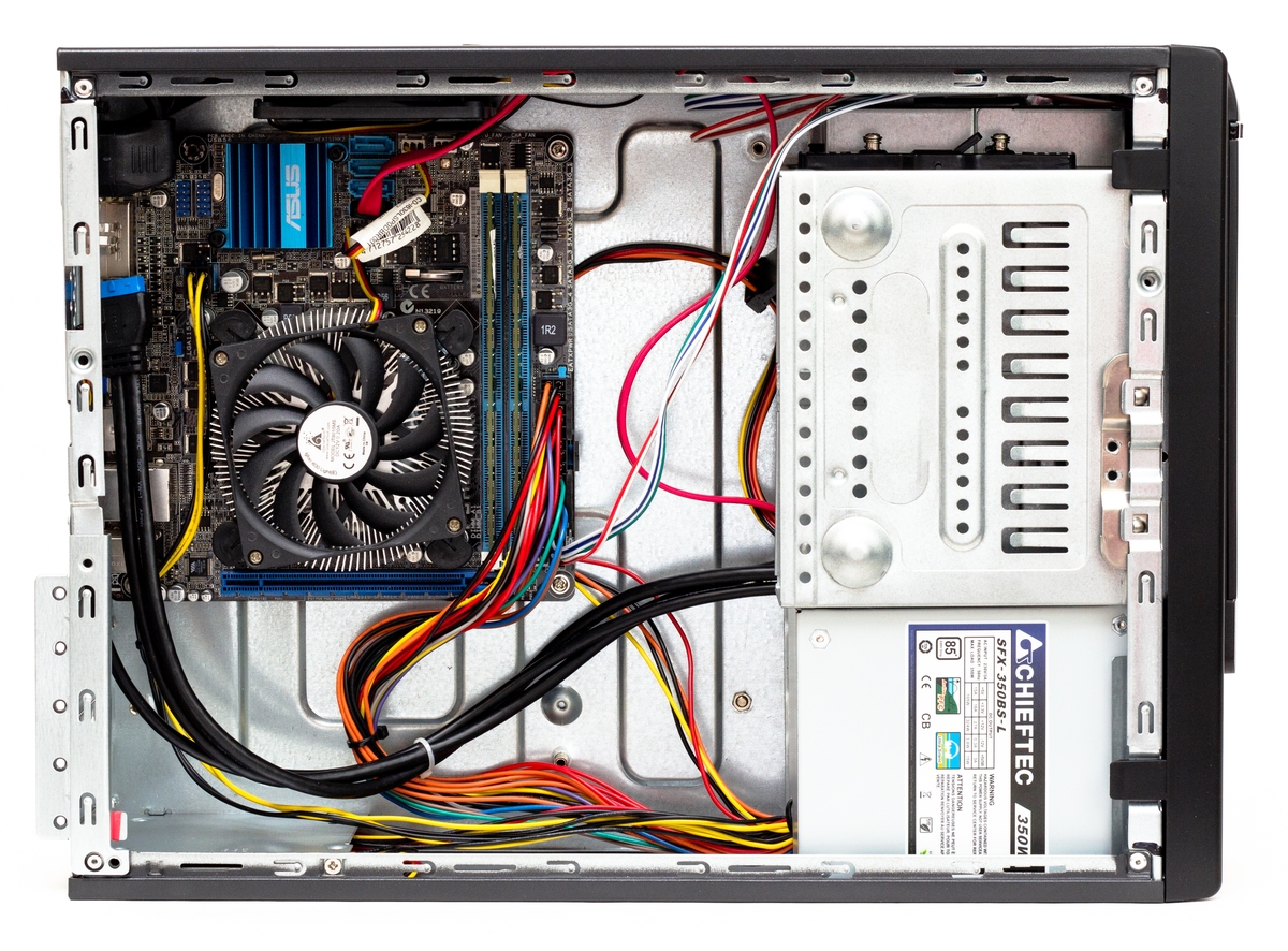В корпусе предустановлен блок питания Chieftec SFX-350BS-L.