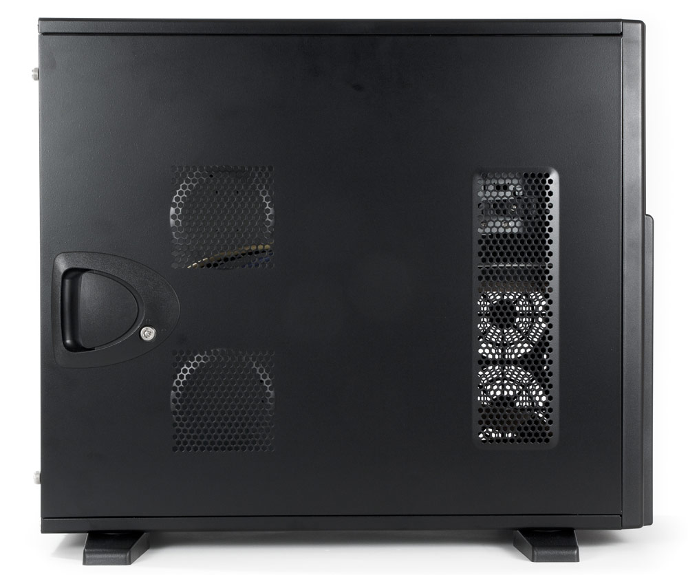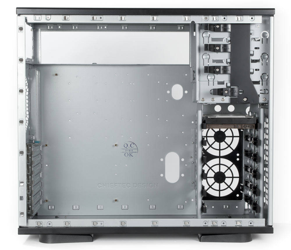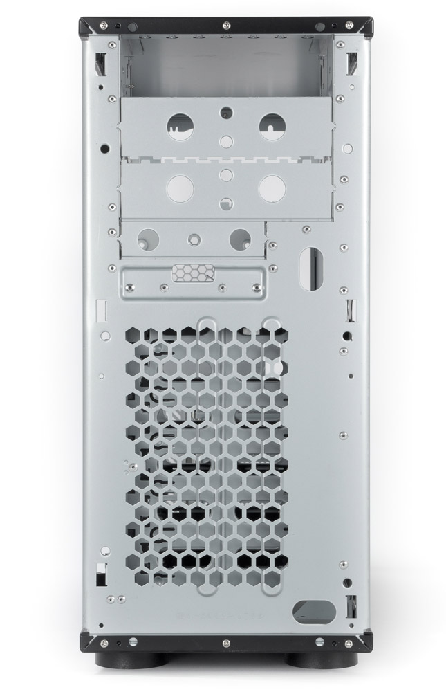 К положительным сторонам корпуса нужно отнести высокую жесткость шасси (а вот боковые стенки могли бы быть и попрочнее) и в целом неплохую конструкцию корзины для дисков, а также большое внутреннее пространство, позволяющее устанавливать системные платы формата EATX.