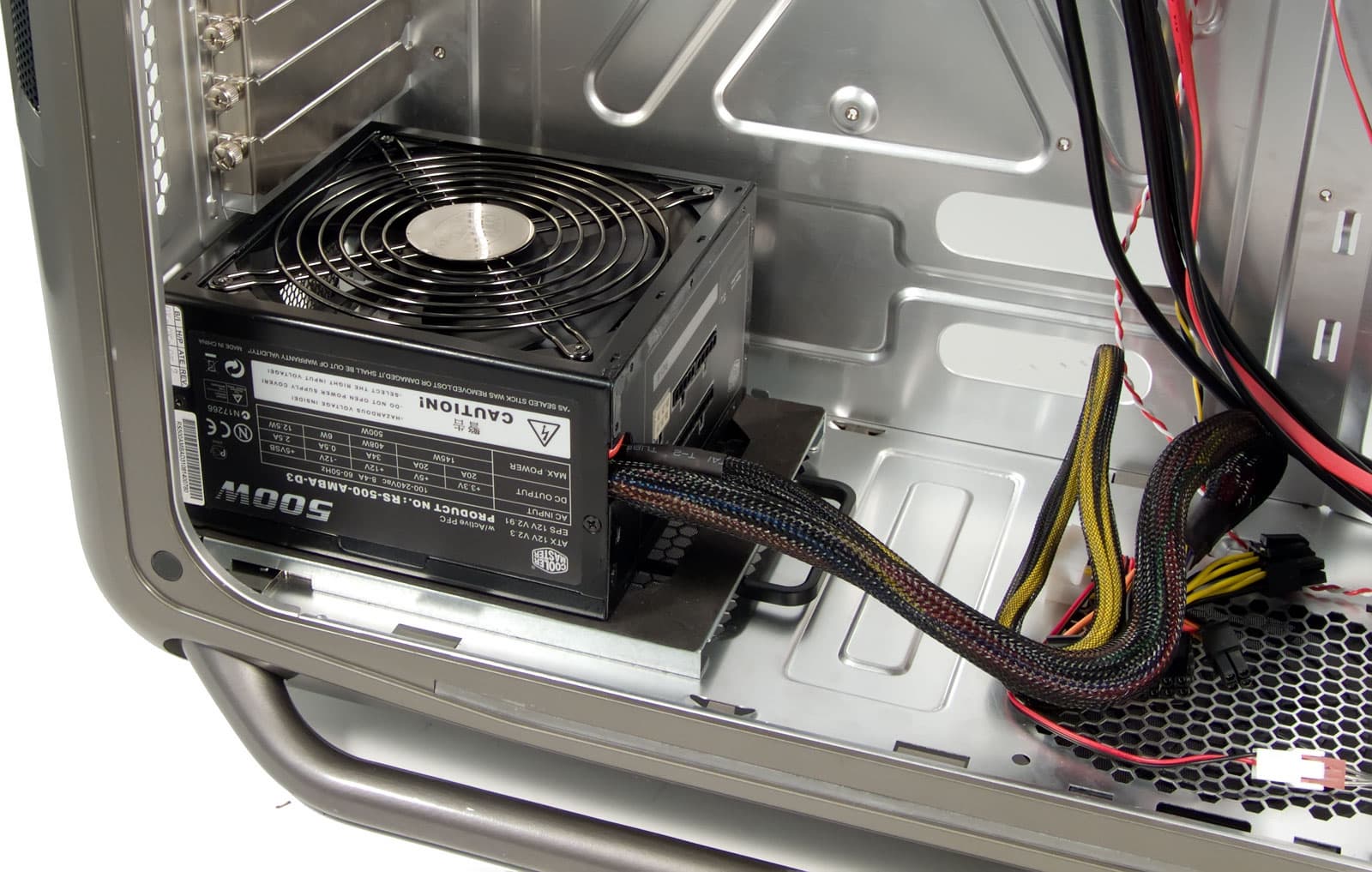 Стандартный блок питания со 120 мм вентилятором без труда можно установить любой стороной, оставив его засасывать холодный воздух через дно или выкачивать горячий воздух из корпуса. Проведенное нами ранее тестирование доказало, что установка БП вентилятором кверху является более удачной с точки зрения температуры компонентов корпуса, в особенности видеокарты.