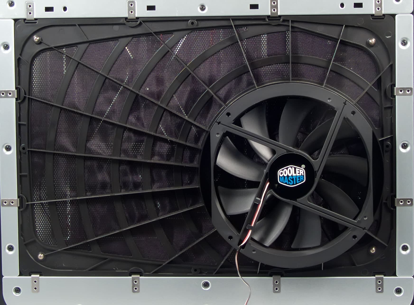 Толщина каждой стенки — примерно 1,5 мм. Данный факт, в паре с дополнительным усилением по всему периметру, делает их сравнимыми по прочности со сталью 0,8-0,9 мм. Стенки не гнутся и «не гуляют» в руках. Левая стенка (если смотреть на корпус спереди) обильно перфорирована, с внутренней стороны на нее установлен пылевой фильтр и вентилятор типоразмера 200мм, аналог Big Boy от Antec. Вся эта конструкция теоретически является съемной, однако для её демонтажа нужно открутить десяток маленьких винтиков. Проще и эффективнее протирать фильтр непосредственно на стенке.