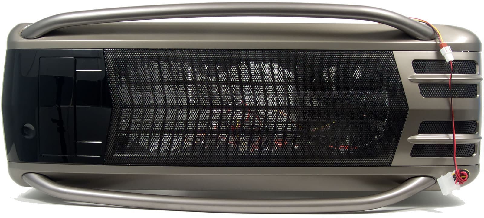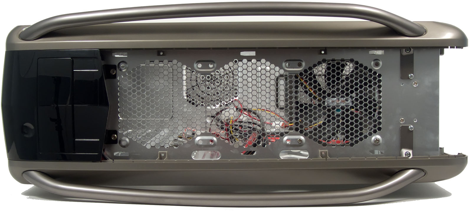 На алюминиевое шасси, имеющие форму правильного параллелепипеда, одет сверху пластиковый кожух, который и создает все скошенные углы на передней и задней панелях. Практически вся верхняя стенка представляет собой перфорированную решетку, деформированную в стиле капота гоночной машины из очередной игры про уличных гонщиков.