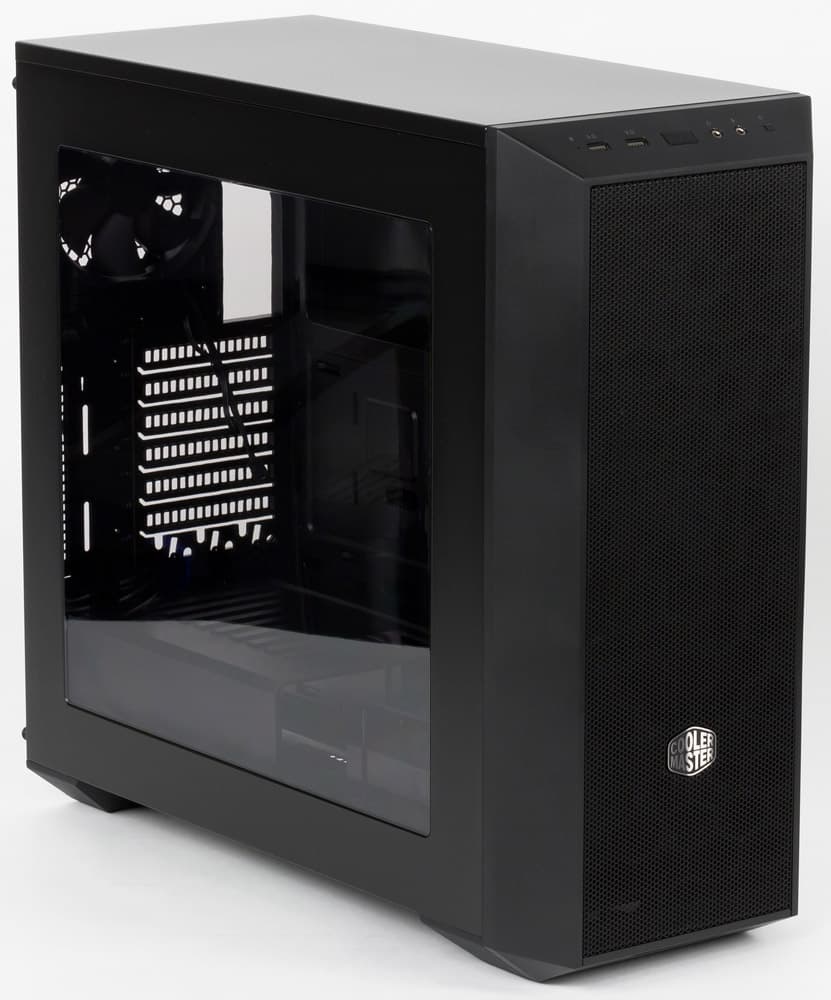 Нам достался корпус Cooler Master MasterBox 5 Black (MCX-B5S1-KWNN-11), то есть черный и с прозрачным окном.