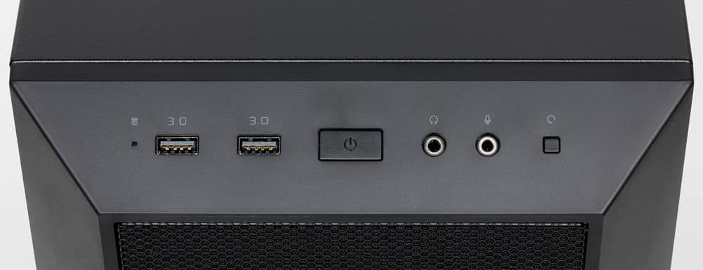 Органы управления и внешние порты расположены на наклонном переходе от лицевой панели к верхней. Таким образом, они будут легко доступны при любом размещении компьютера — на столе, на полу или на низкой подставке.