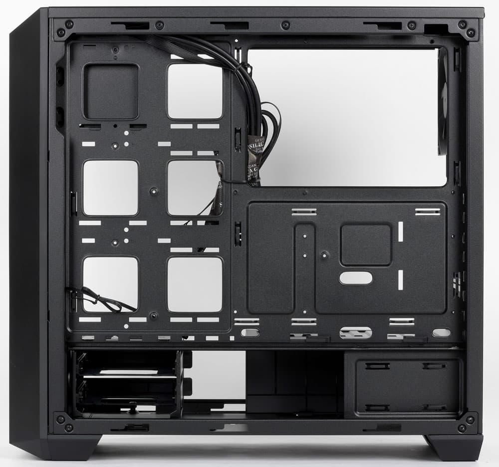 Корпуса Cooler Master MasterBox 5 предоставляют владельцу широкие возможности для выбора компонентов будущего компьютера: несмотря на то, что по размерам они относятся к miditower, в них можно установить практически любую из сколь-нибудь распространенных системных плат — вплоть до E-ATX. Правда, прорезей для плат расширения всего семь.