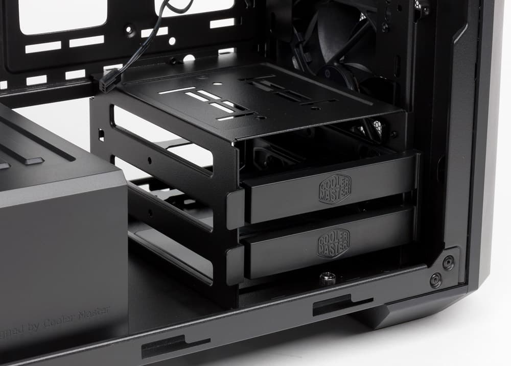 Cooler Master MasterBox 5 — это пример недорогого корпуса с бюджетным оснащением, но достаточно широкими возможностями, которые позволят использовать его в качестве основы для сборки широкого спектра компьютеров, офисных и домашних, включая игровые начального и среднего уровня. Этому способствует простор для выбора системных плат и видеокарт, а вот в плане установки накопителей есть существенные ограничения: 5,25- и 3,5-дюймовых отсеков с выходом на лицевую панель нет вовсе, а штатных мест для установки HDD/SSD всего три. Впрочем, большего для очень многих компьютеров и не требуется. Да и двух комплектных вентиляторов в большинстве случаев будет вполне достаточно. Предусмотрено расширение возможностей корпуса за счет установки дополнительных крепежных модулей для дисковых накопителей, однако реализовать подобное получится вряд ли: такие опции еще надо умудриться купить.