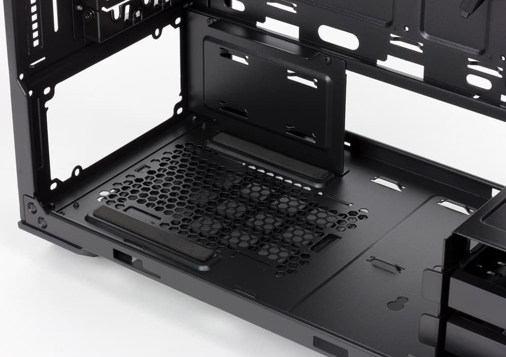 Для установки 2,5″ SSD или HDD на днище корзины есть четыре отверстия под винты.