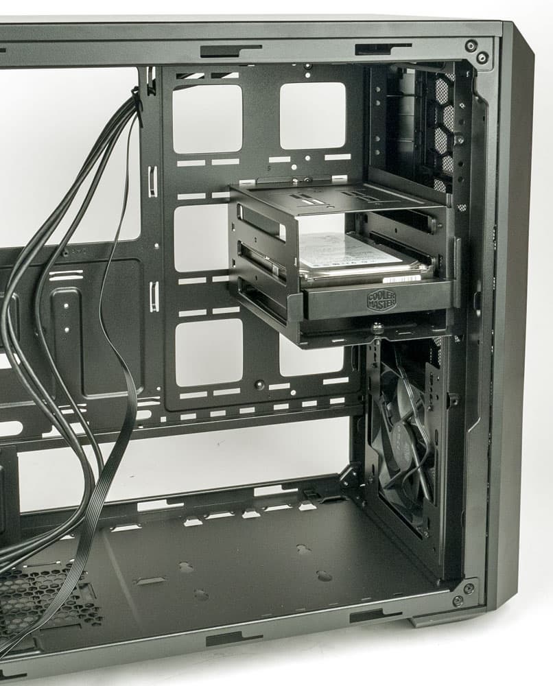 При сборке стоит быть осторожным с съемной корзиной для жестких дисков, а точнее с верхний левым углом со стороны сборщика, так как данный элемент представляет собой кусок металлической полосы, которая завальцована только по длинной стороне, а вот ее короткая сторона (торец) какой-либо дополнительной защиты не имеет. Это привело к появлению достаточно острого угла в районе манипуляций сборщика, поэтому есть вероятность, если и не травмироваться, то получить не слишком приятные ощущения при контакте рук с этим углом.