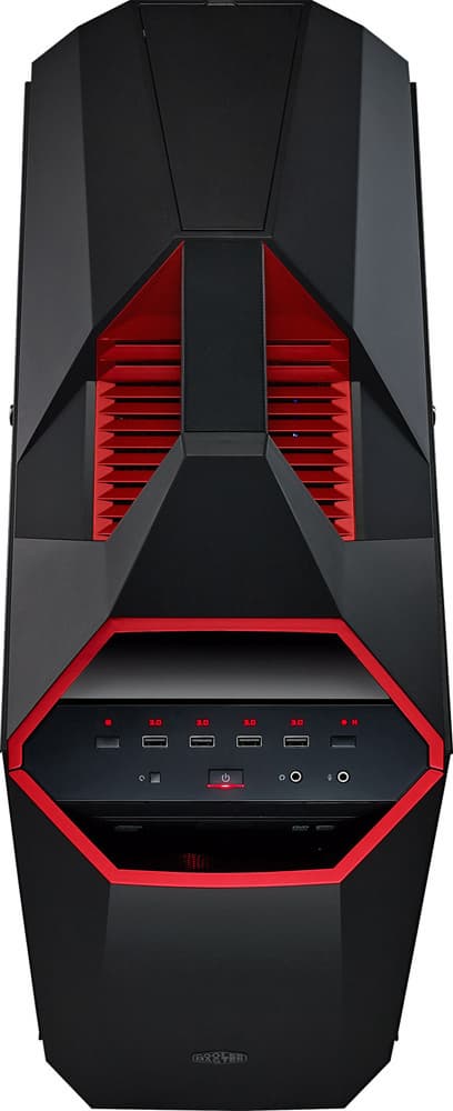 Панель управления находится на скошенном переходе между фронтальной и верхней крышками. Различные органы на ней располагаются двумя горизонтальными рядами, верхний состоит из четырех портов USB 3.0, окруженный двумя кнопками — левая управляет встроенной светодиодной подсветкой, правая вентиляторами.