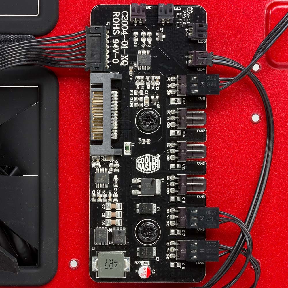Корпус оснащен штатным одноканальным контроллером вентиляторов на основе полупроводникового источника питания (ШИМ), который имеет два режима: L и H. В режиме L напряжение питание составляет около 7,45 В, в режиме H — около 11,7 В. Режимы переключаются последовательно при помощи кнопки, имеется индикация текущего режима. Питание контроллера двухканальное: 5 В и 12 В, осуществляется оно при помощи разъема SATA Power. Никакими дополнительными призвуками работа контроллера не сопровождается.
