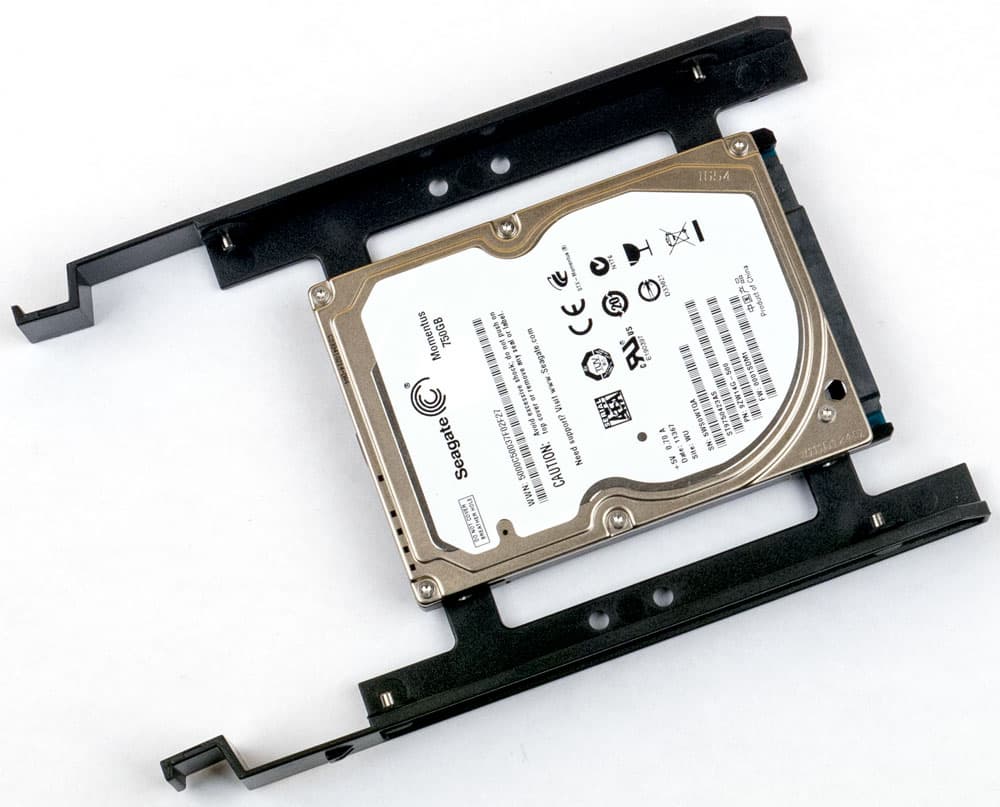 2,5-дюймовые контейнеры крепятся к перегородке или подложке системной платы с одной стороны выступом, входящим в паз, а с другой — винтом с накатной головкой. Накопитель фиксируется на контейнере винтами снизу, для подключения годятся кабели только с прямыми разъемами.