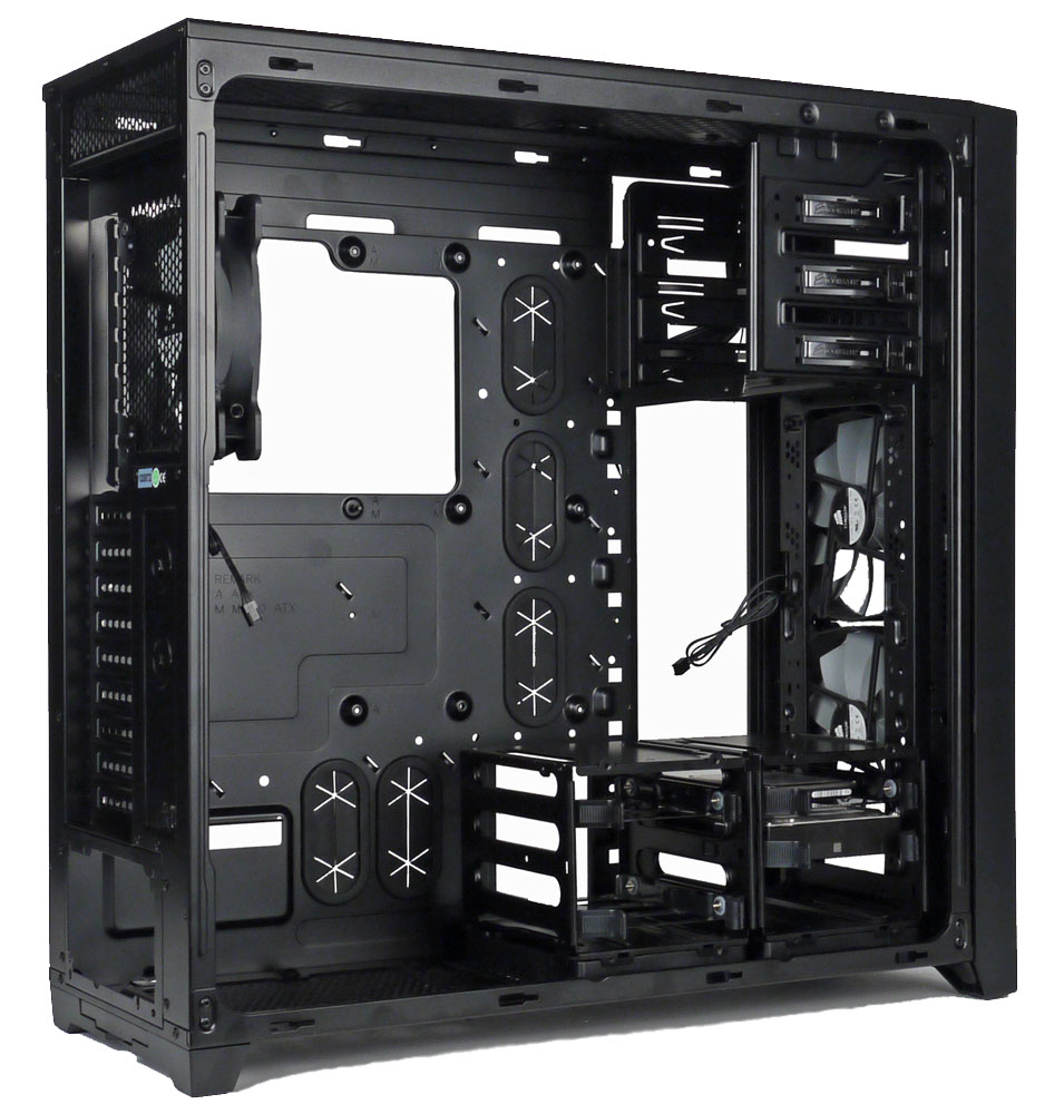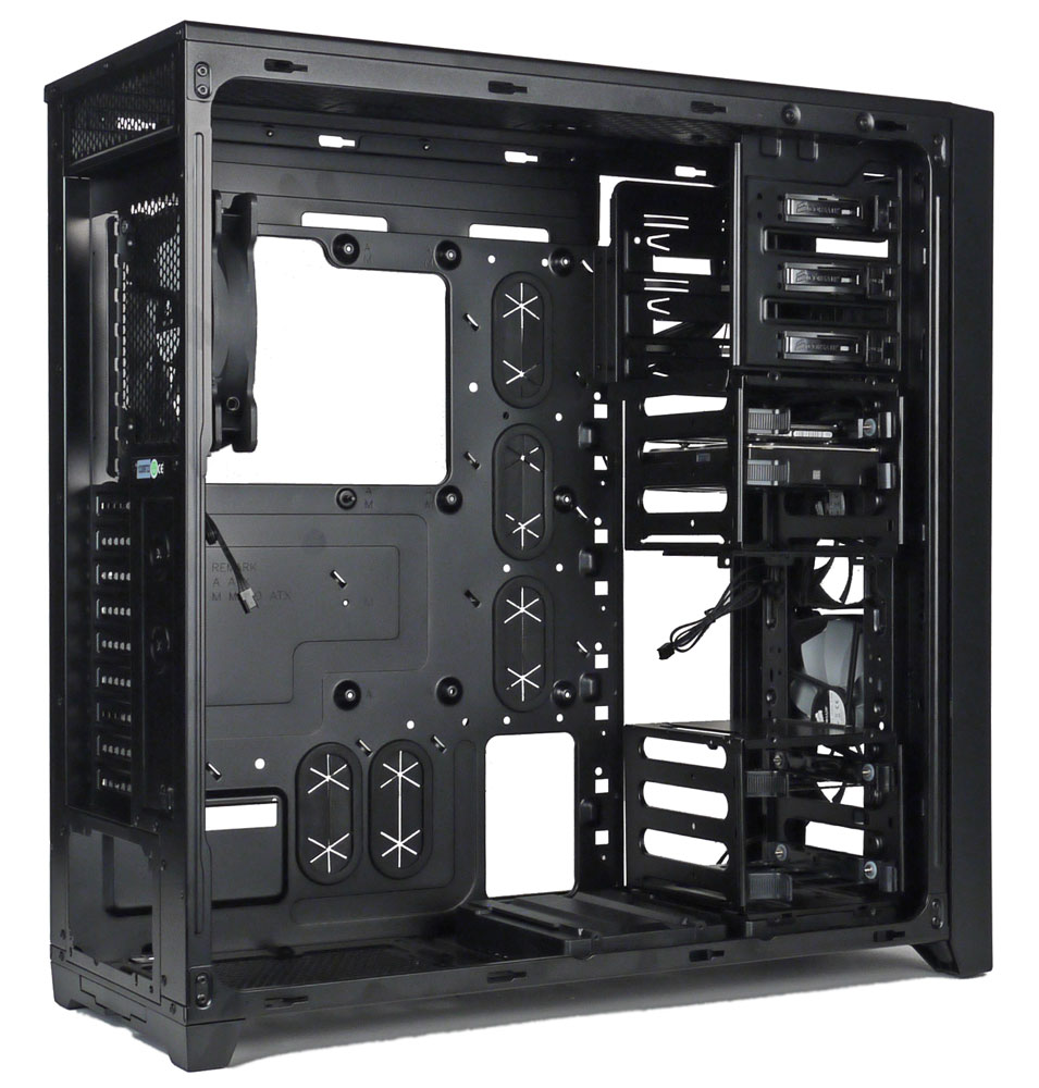 Корпус рассчитан на установку системных плат формата до E-ATX включительно, количество слотов расширения — девять.