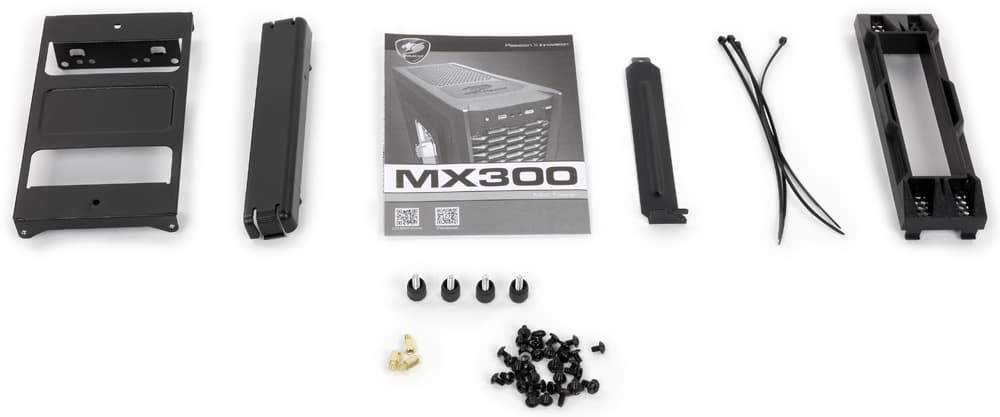 Cougar MX300 — miditower средней величины с максимальным размером устанавливаемых системных плат ATX и количеством плат расширения до семи. Небольшой вес корпуса, составляющий всего 5 кг, обусловлен использованием в конструкции довольно тонкой стали: наш замер показал 0,6 мм, а также большим количеством отверстий в шасси. Соответственно и жесткость получилась невысокой.
