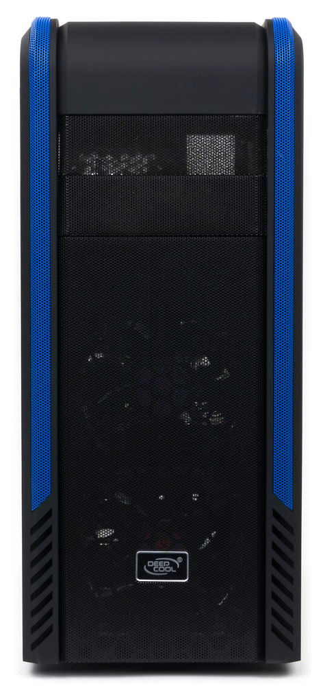 Лицевая панель каких-либо органов управления не имеет, на ней есть лишь заглушки пятидюймовых слотов и вентиляционная решетка.