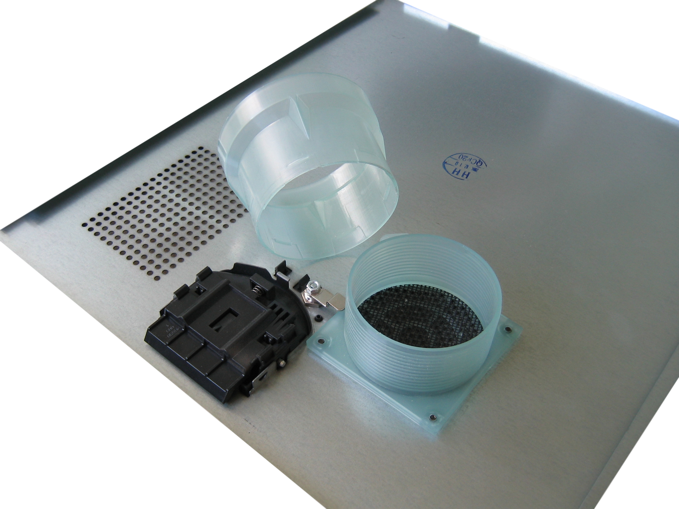 Воздухоотвод для процессорного кулера, разумеется, не всегда оказывается напротив самого кулера, но это инженерам Foxconn ставить в вину нельзя, так как стандарта на расположение процессорного сокета на плате для плат формата ATX не существует, и каждый производитель располагает его там, где ему удобнее. Разумно в данной ситуации выглядит то, что раструб можно слегка подрегулировать по длине (его труба навинчивается на крепление в боковой панели) — или свинтить вообще.