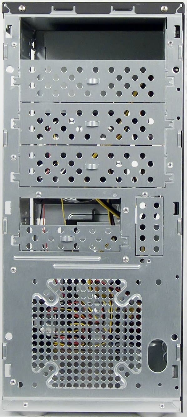 Корпус ZL-142A обладает лаконичным и совсем не бюджетным дизайном. Толщина его стали уже достаточна для того, чтобы не слушать дребезжания боковых стенок во время раскручивания диска в приводе. Наличие мест для установки двух 120мм вентиляторов позволит при желании организовать качественное и тихое охлаждение комплектующих.