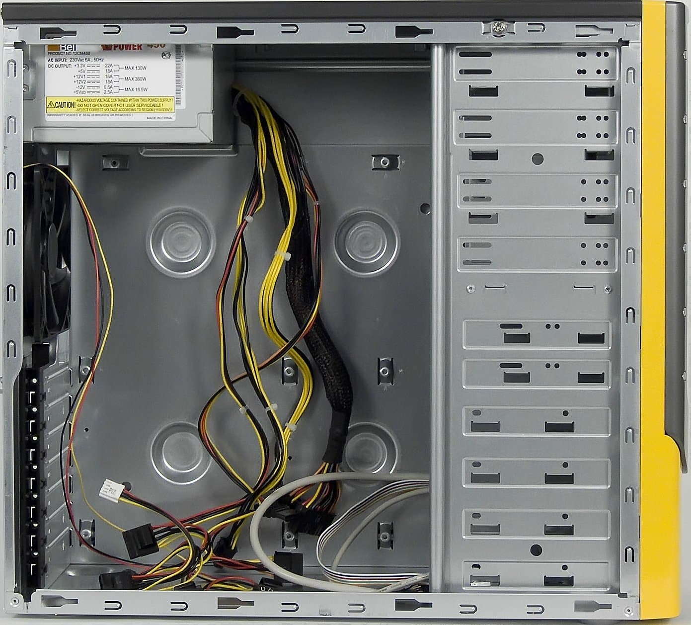 Корпус может поставляться с блоком питания нескольких производителей. Мощность комплектного БП колеблется от 300 до 500 Вт.