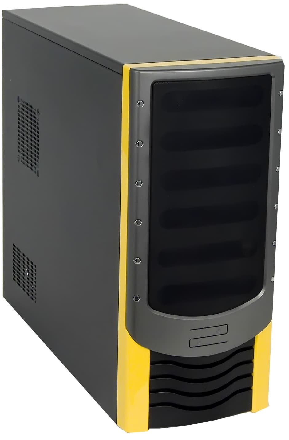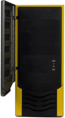Дизайн передней панели в доставшемся нам варианте расцветки довольно смелый. Но если не рассматривать цветовое сочетания черного с желтым (которое нельзя назвать плохим, просто весьма специфичным), то внешний вид передней панели оставляет впечатление органичности и лаконичности. Такой корпус прекрасно впишется как в домашний, так и в офисный интерьер. Выглядит он, на наш взгляд, несколько дороже своей стоимости.